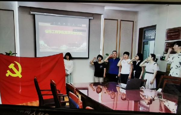 信息工程学院党总支举行迎“七一”党员宣誓活动 为庆祝中国共产党成立99周年,6月30日上午,信息工程学院党总支以线上线下相结合的方式,隆重举行党员宣誓活动,学院全体辅导员、本学期新发展的20名学生党员参与此次活动。活动由学院学生党支部书记陈贵霞主持。&nb...
