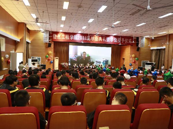 信息工程学院隆重举行2018届毕业典礼暨学位授予仪式 6月28日上午,信息工程学院在明德楼报告厅举行2018届毕业典礼暨学位授予仪式。党政办、教务处、学位研究生管理处、科研处、学生工作处、招就处等职能部门负责人,学院教授、博士及各系室办主任、部分教师代表,2018届...