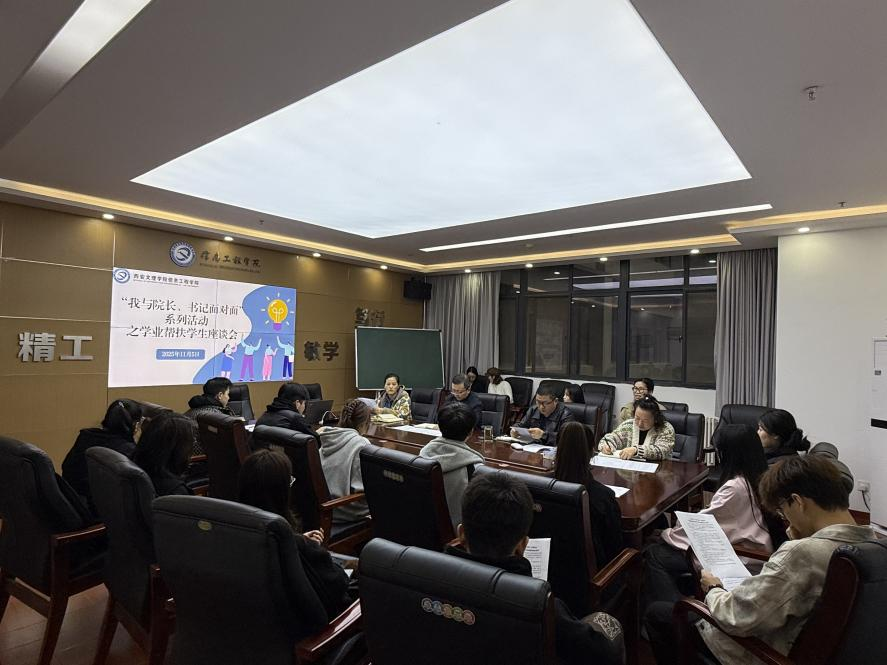 “我与院长、书记面对面”系列活动之十四 为深入了解学生学业与生活适应情况,聚焦学业帮扶关键问题,搭建学院领导与学生的直接沟通桥梁,2025年11月5日下午14:30信息工程学院在行知楼S503会议室举办了“我与院长、书记面对面”系列活动之学业帮扶学生座谈会。学院党总支书记王向阳,科研副院长冯永亮教授,党政办主任张馨卬,全体辅导员老师及国奖、国励志获得者、学籍预警学生代表共同参会,会议由学院党总支副书记许萌主持。 国奖、国励志获得者结合自身学习经历,详细分享了高效学习方法、...