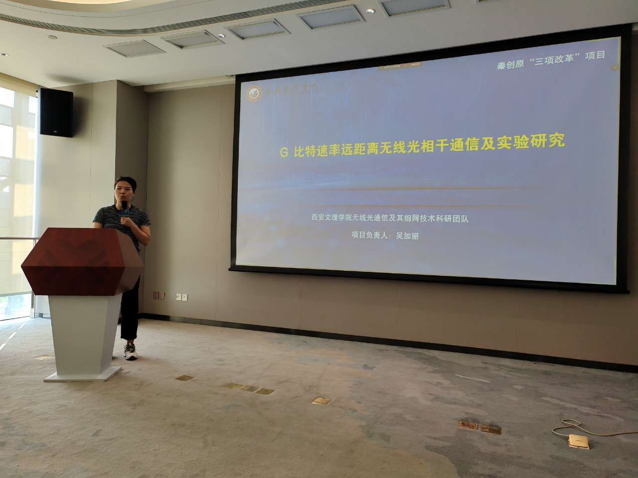 经过团队申报、专家指导以及学校推荐,我院吴加丽博士申报的“G比特速率远距离无线光相干通信及实验研究”项目顺利完成路演决赛。该项目对大气湍流信道中无线光相干通信中的新理论、新方法及远距离无线光相干通信实验进行了详细的研究。项目的主要内容包括:(1)提出了一系列自适应光学波前校正方法,提高混频效率;(2)发明了晶体空间光混频技术;(3)发明了大气湍流中空间光—光纤5维耦合技术;(4)提出了非共光路光束捕获、对准和跟踪技术;(5)开展不同距离的无线光相干通信系统实验。