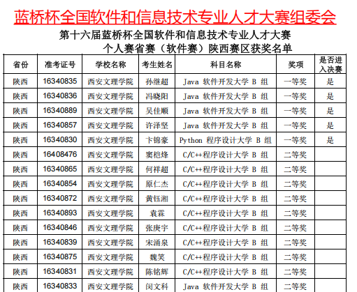近日,第十六届蓝桥杯全国软件和信息技术专业人才大赛组委会公布省赛(软件类)获奖名单,西安文理学院信息工程学院学生获得了省级一等奖5项、二等奖20项、三等奖30项的好成绩,创下参赛规模与竞技水平新高,获得省级一等奖的学生将代表学校参加国赛。