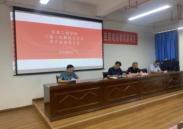2022年6月29下午2:30西安文理学院三届三次教职工代表大会暨信息工程学院分工会会员大会在实训楼504会议室隆重召开。信工学院院长杨渭清,党总支书记李昉等学院领导班子成员出席会议,近百名信工学院教职工参与会议,会议由党总支副书记李承主持。