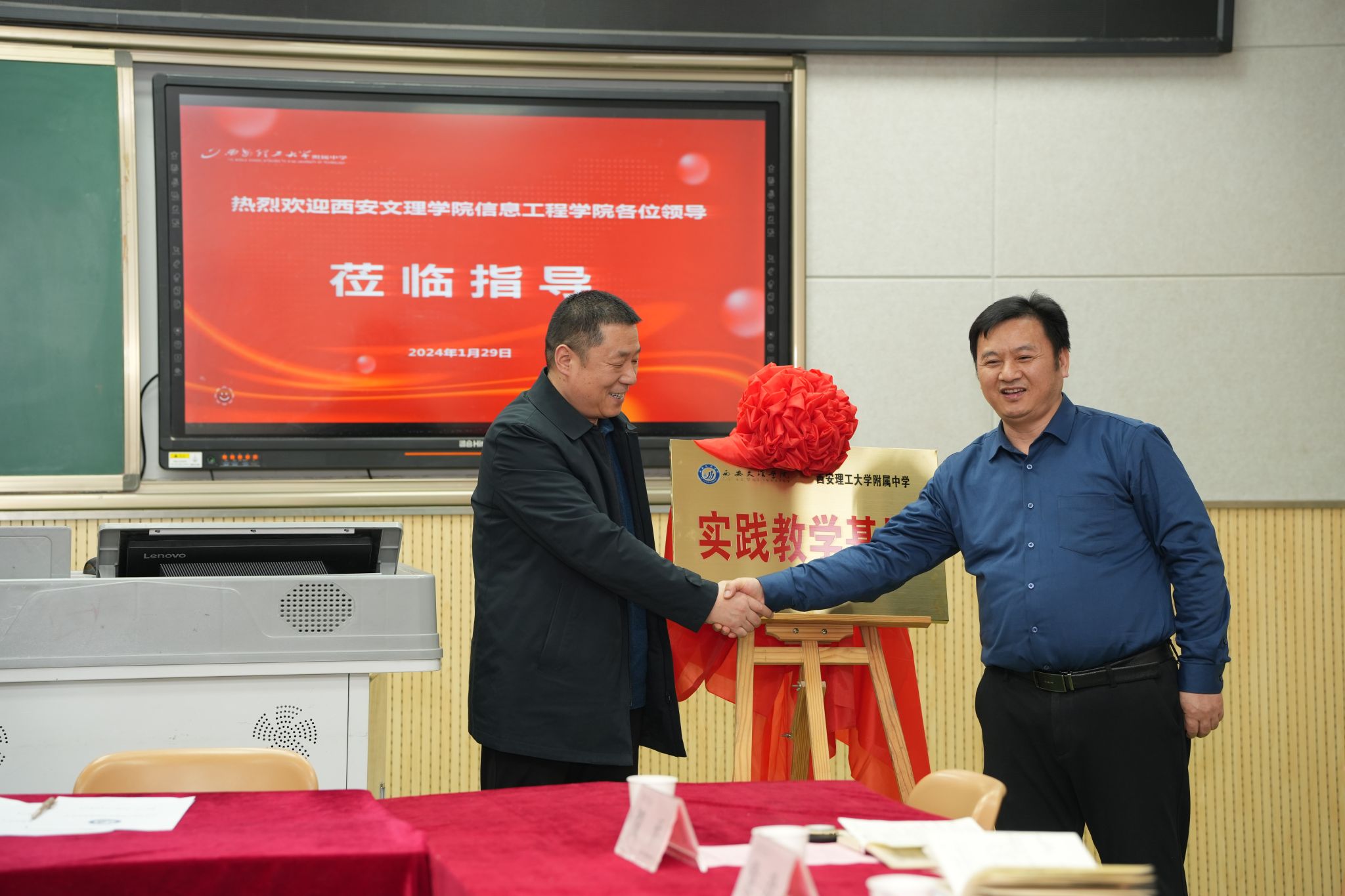 为进一步加强实践教学基地建设,打造“协同育人”格局,1月29日下午,信息工程学院党总支书记王向阳、副院长陈广锋、副书记许萌及数学系教师前往西安理工大学附属中学,签署西安文理学院教育实践基地协议。