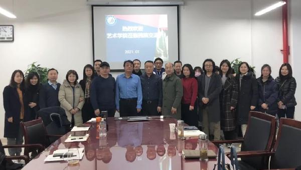 双方着重在教学、科研、学生工作三个方面展开了学习交流。张力宁从教师技能培训、线上教学课程、教学考核评价、师范专业认证、一流学科建设等方面进行了讲解;陈广锋在人才培养、学科竞赛、产学研、大创项目作了介绍;李向军在科研目标任务的安排、科研团队建设及绩效机制的保障等方面作了介绍,艺术学院对口分管的领导、系部主任作了提问互动。李昉、李晓煜等就基层党建、 “美育”工程、学生管理、就业推进等方面做了介绍与互动。
