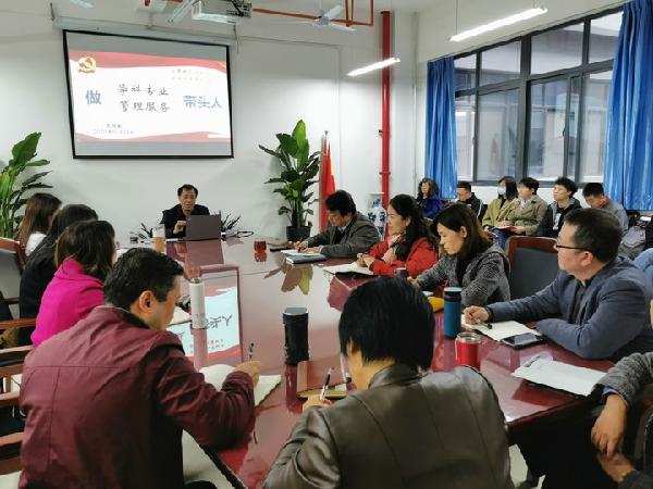 10月14日下午,信息工程学院提升干部管理服务能力报告会在学院会议室召开,校离退处党总支书记张智敏作了题为“立德树人守初心,学院发展勇担当——做学科专业、管理服务带头人”的报告,学院全体班子成员、各系部主任、全体行政教辅人员参加了会议,会议由院长杨渭清主持。