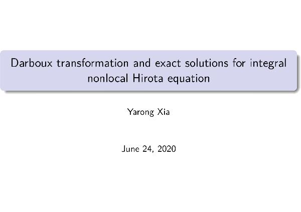 夏亚荣老师的主要研究方向为孤立子理论及可积系统。报告开始,夏老师先向大家介绍了孤立子及可积系统的相关理论,接着给出了非局部方程和达布变换的研究背景,进而通过浅显朴实的语言,为大家详细展示了非局部Hirota方程的推导过程,并给出了该方程的达布变换构造方法,绘制出了优美的孤立子图形。整个报告从研究理论到具体的应用,深入浅出,使大家对Darboux变换在非线性非局部方程中的应用有了基本的了解。