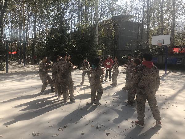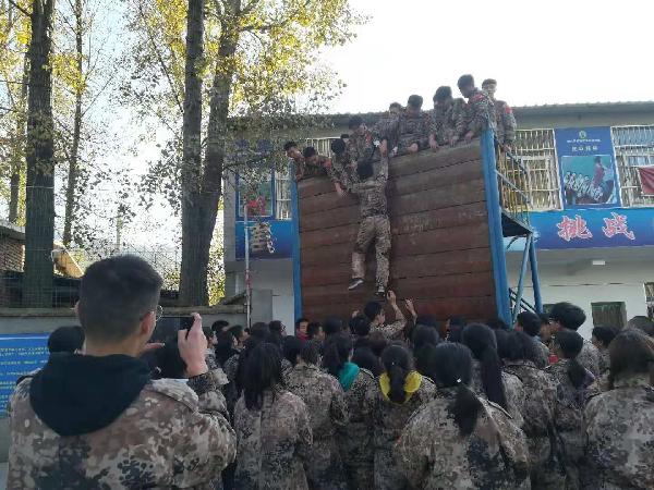 攀爬高墙,奋力一博。这个教练规定三十分钟内完成的项目我们只用了十九分钟就完成了。这其中包含着每一个人的努力,无论是人梯组,拉人组,还是加油组,每一个人都在为着同一个目标而努力。