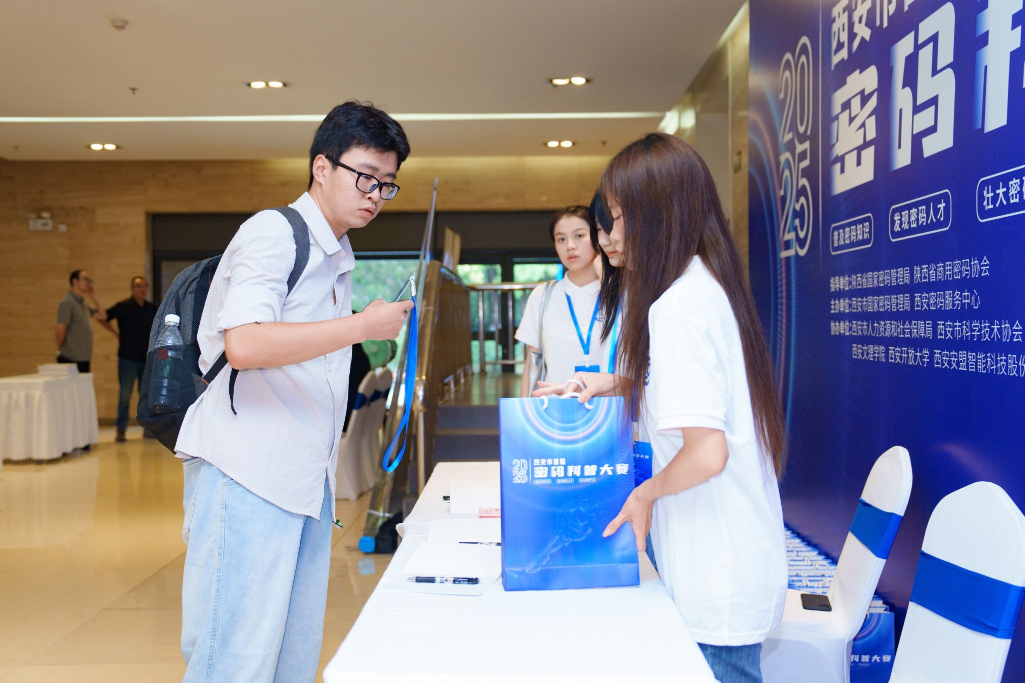 为助力密码科学知识普及,推动网络安全人才培养,西安市首届密码科普大赛2025年7月31日—8月2日在西安文理学院A区报告厅成功举办。信息工程学院积极响应号召,组织20余名青年志愿者全程参与赛事服务工作,以专业素养和热情态度为大赛顺利开展提供坚实保障,展现了新时代青年的责任担当与科技志愿服务精神。