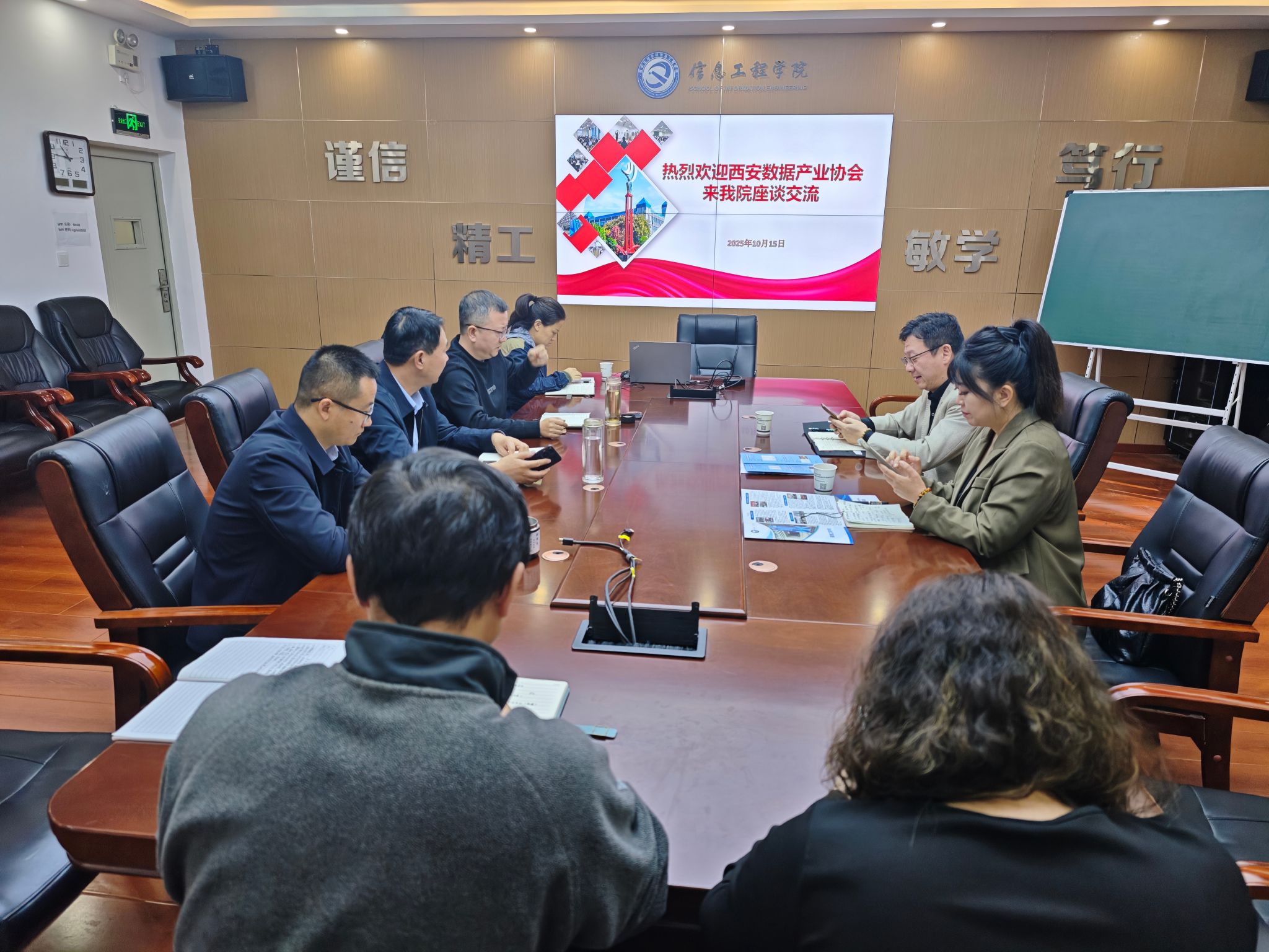 为积极响应国家数字经济发展战略,深化产教融合,创新人才培养模式,2025年10月15日上午9时,西安文理学院信息工程学院与西安市数据产业协会交流座谈会在行知楼S503会议室顺利举行。西安市数据产业协会监事长艾宇、副秘书长卫琳,院长陈广锋,副院长刘光军,党总支副书记许萌,数据科学系主任许迅雷、副主任林艳艳及科研秘书董思越等共同出席座谈。座谈会由副院长冯永亮主持。
