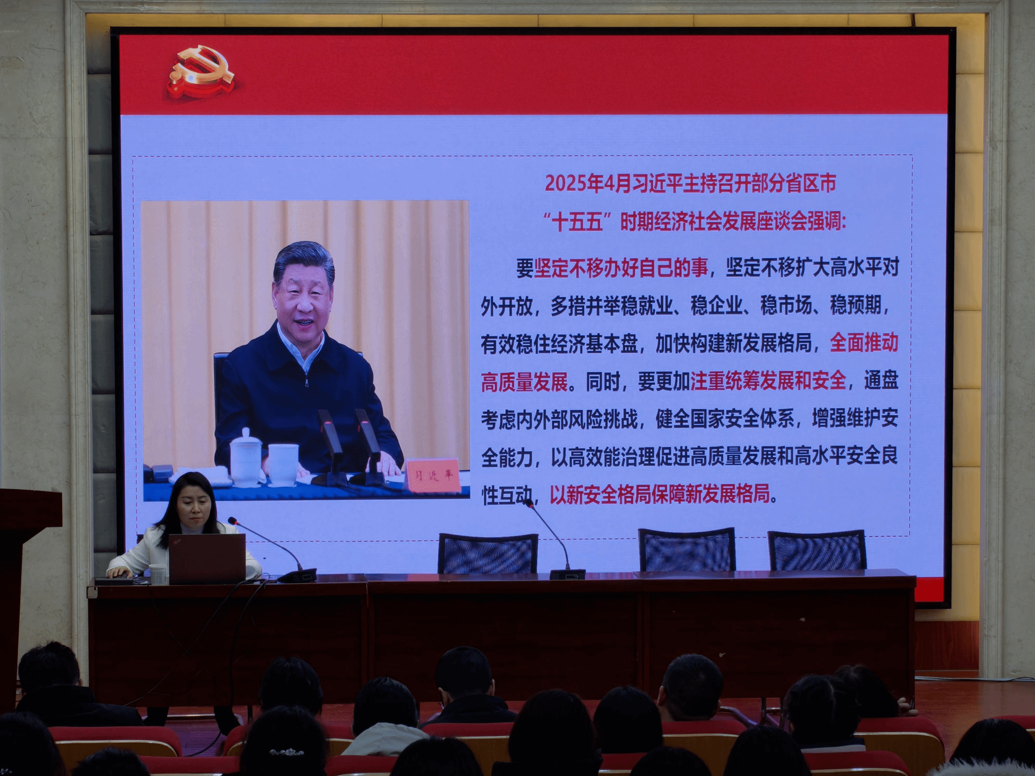 本次宣讲紧扣全会核心内容展开,先以时间为轴梳理历次“五年计划”的发展历程,生动阐释我国发展的战略智慧与辉煌成就;随后重点解读2025年10月在北京召开的党的二十届四中全会审议通过的“十五五”规划建议,深入剖析新时期发展的指导思想、主要目标与重点任务。主讲人强调,贯彻落实全会精神,需要全体师生将学习感悟转化为行动自觉,立足专业岗位凝聚奋进力量。