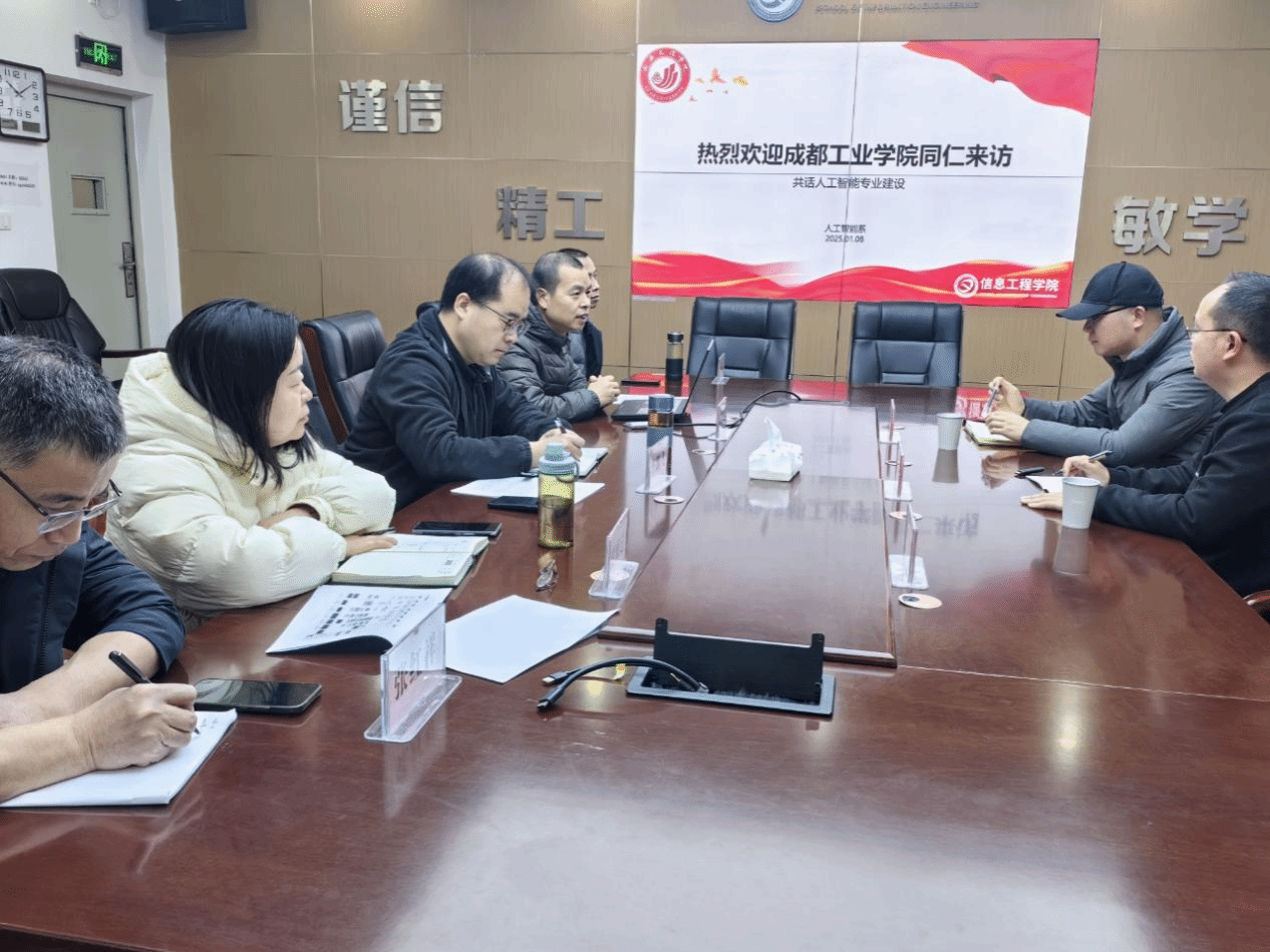 1月8日上午,成都工业学院大数据与人工智能学院秦飞龙、朱虹锦老师一行莅临信息工程学院,就人工智能专业建设开展交流研讨。双方重点围绕人才培养方案的优化、学生就业指导策略以及通识课程的设置与融合进行了深入探讨。交流中,双方坦诚分享了各自在教学改革与产教融合方面的经验与思考,现场气氛热烈融洽。