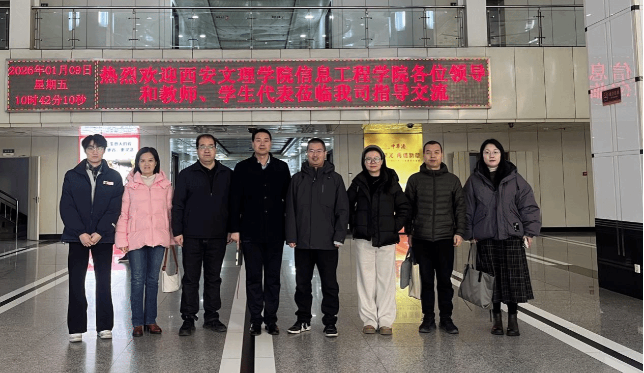 1月9日上午,信息工程学院院长陈广锋教授一行赴西安禾智数融信息技术有限公司开展“访企拓岗”专项行动。学院党总支副书记许萌、学院实践工作负责人车鹏飞、软件工程系主任袁溪、人工智能系主任赵宁社、骨干教师高丽娜及优秀学生代表参加。公司负责人周总及各部门主管热情接待了学院一行。在座谈交流中,双方就学生就业、顶岗实习安排以及人才培养方案优化等核心议题进行了深入探讨。