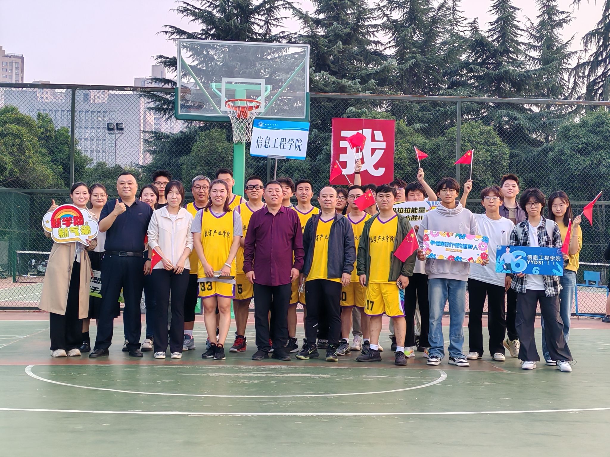 信息工程学院在队长王向阳书记带领下,组建了15人的篮球队,首场比赛对阵美术与设计学院。赛场上,信息工程学院代表队展现出了团队配合和顽强的拼搏精神。队员们积极跑动、互相配合,伴随着“哐哐”入篮的清脆声响,每一次得分都点燃了场边的激情;赛场下,信息工程学院拉拉队的喝彩声、加油声此起彼伏,为赛场上的运动员们增添了无尽的动力。经过四节激烈角逐,最终,我院以49:38赢下首场比赛。