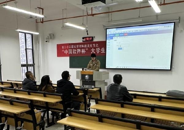 比赛分为A命题类和B自拟题目类两个组别,共有43支队伍参赛。决赛包括参赛选手的项目演示与答辩,答辩组的提问点评等环节。通过项目演示和答辩环节,参赛选手们积极展示了软件创新成果和技术实力。答辩组对学生作品进行深入的提问和全面的点评。