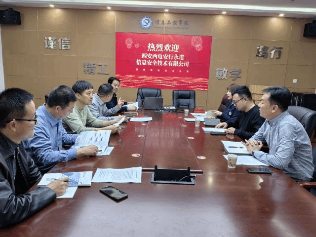 11月15日上午,西安西电安行永道信息安全技术有限公司董事长孙磊、业务总监张世龙等一行应邀来信息工程学院就网络安全微专业建设进行合作洽谈。学院党总支书记王向阳、教学副院长陈广锋、西安市网络安全技术重点实验室主任刘光军等参加了会议。
