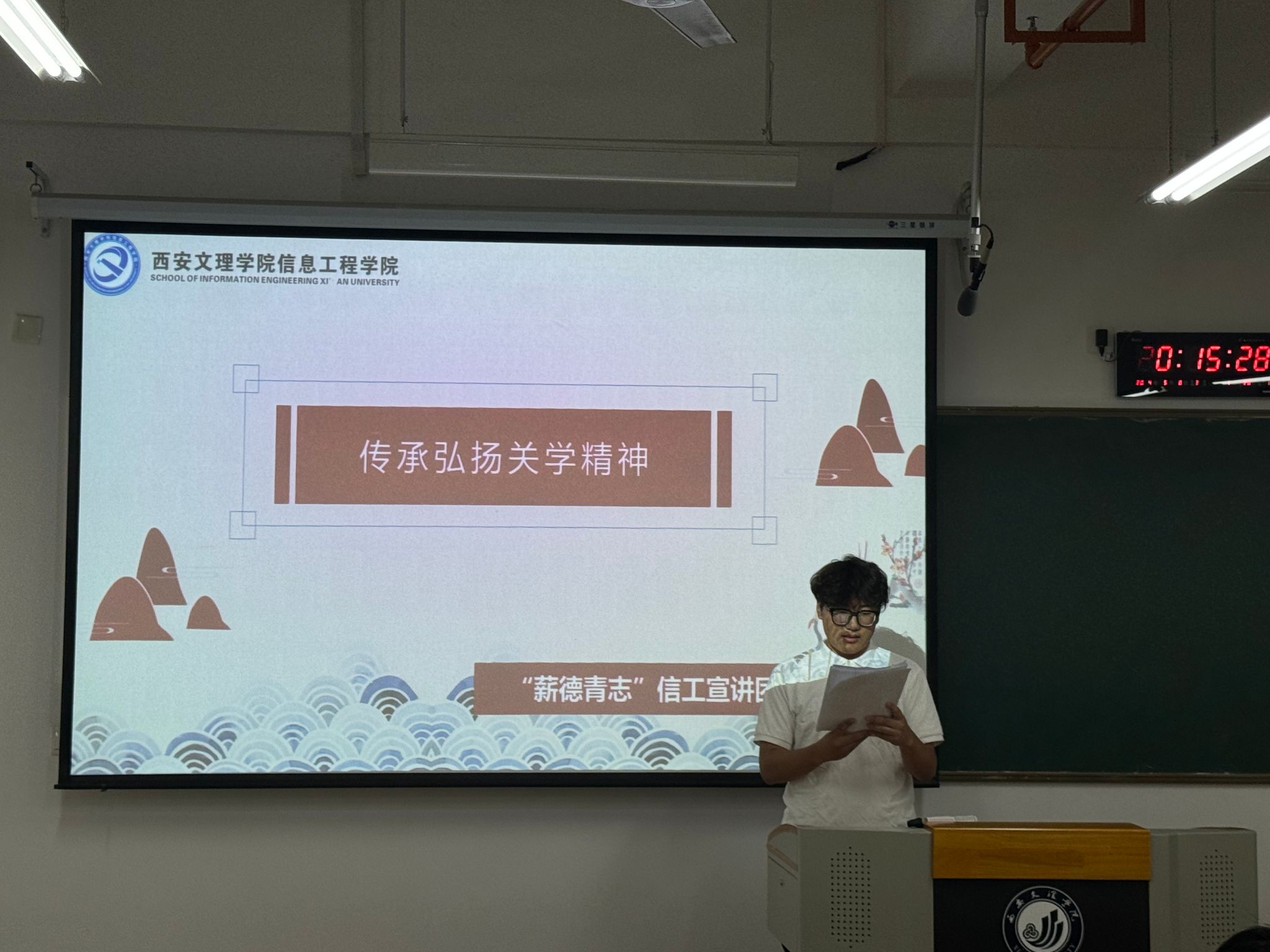 信息工程学院一直致力于培养德智体美全面发展的优秀人才,通过传承关学精神,学院希望能够引导学生树立正确的人生观、价值观,成为社会的栋梁之才。今后,信息工程学院“薪德青志”宣讲团将继续深入校园各个角落,开展更多形式多样、内涵丰富的主题宣讲活动,为学生打开智慧之门,引领他们在学术与人文的海洋中扬帆远航,以崭新的姿态谱写人生的华章。