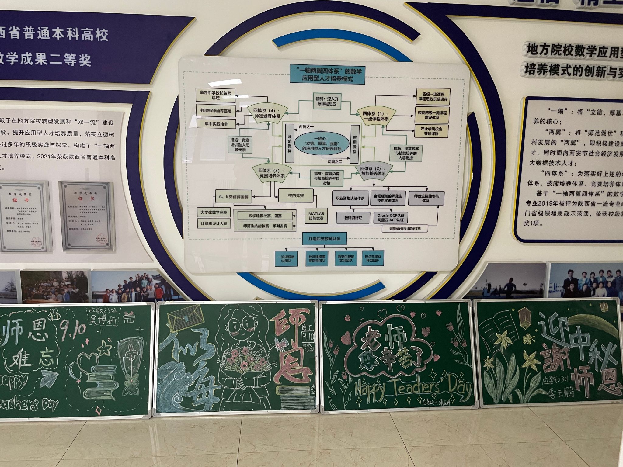 学院数学与应用数学专业的学生以手绘黑板报的形式向老师们献上节日的祝福。一幅幅色彩斑斓、创意无限的画面跃然于黑板上,每一笔、每一划都蕴含着学生们对老师深深的敬意与感激之情,让学院的每个角落都弥漫着节日的温馨与喜悦。