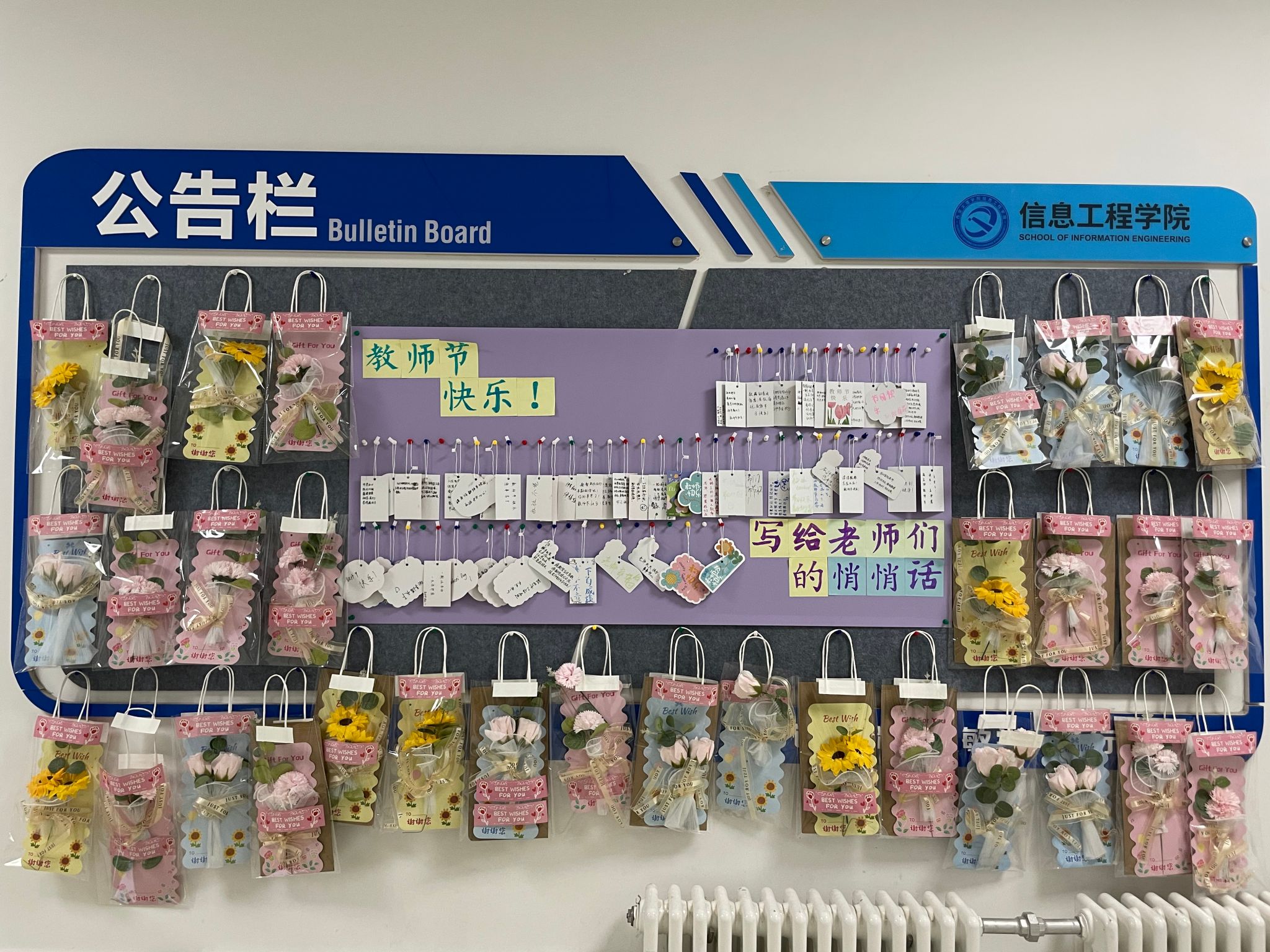 为了增添节日的浪漫与温馨,学生们还亲手制作了各式各样的鲜花,从挑选材料到精心搭配,每一步都凝聚着学生们的用心与创意。一束束色彩斑斓、形态各异的手作鲜花,在教师节当天被送到了老师们的手中。这些鲜花不仅美丽了校园,更温暖了老师们的心房,让这份来自学生的爱如同花儿般绚烂绽放。