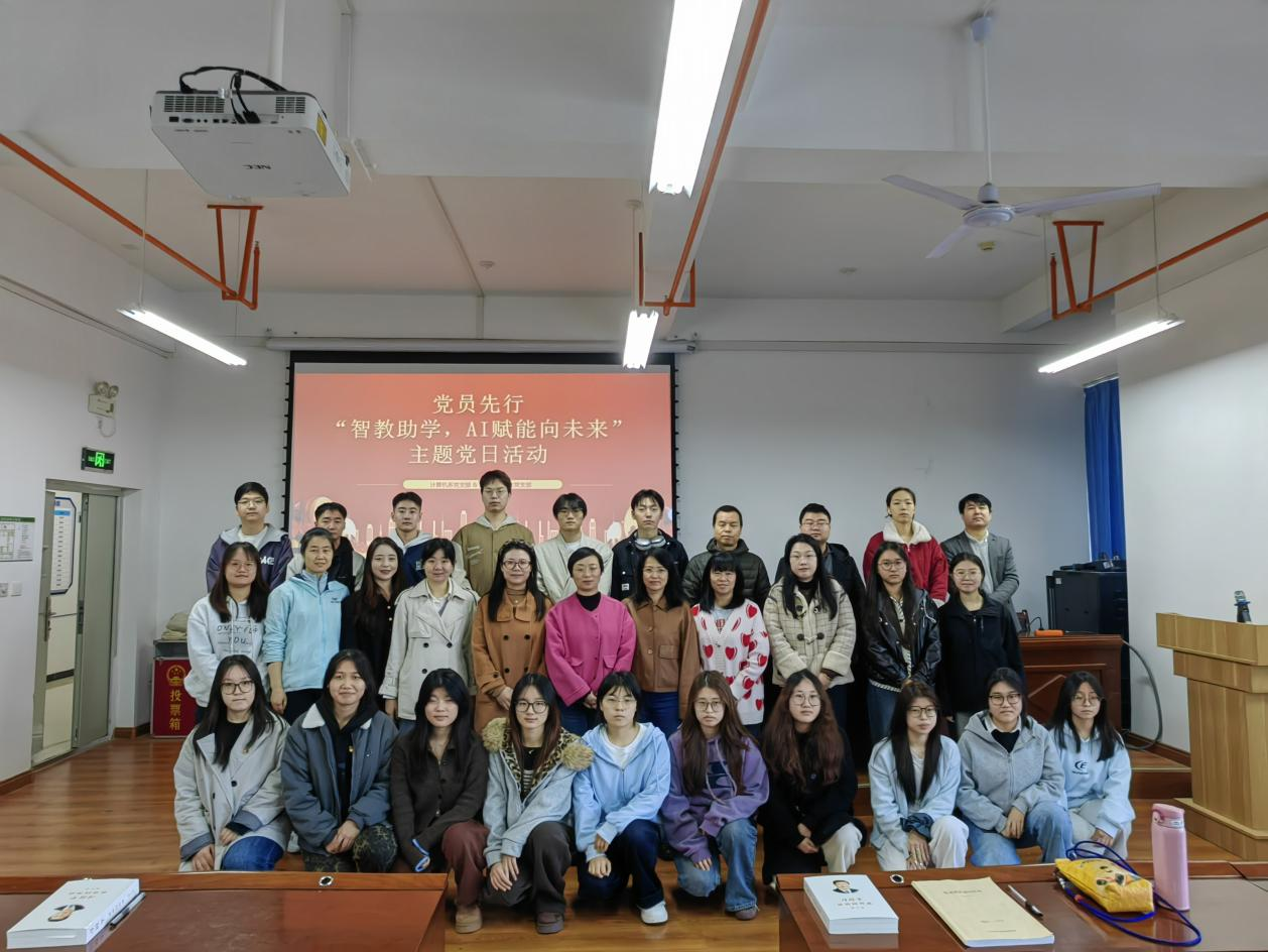 本次活动由计算机系学生党支部书记韩蒙主持。活动采取“理论学习+党课教育+主题分享+集体合唱”相结合的方式,推动党建与业务深度融合,激发全体党员在AI时代的教育使命与责任担当。