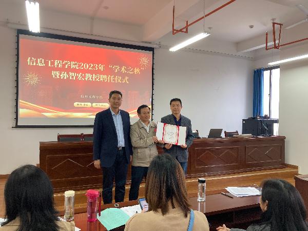 10月27日下午,淮阴师范学院数学与统计学院孙智宏教授受聘我院兼职教授聘任仪式暨学术报告会在实训楼S512会议室举行。信息工程学院副院长陈广锋、数学系主任王宇及数学系全体教师和学生代表参加。