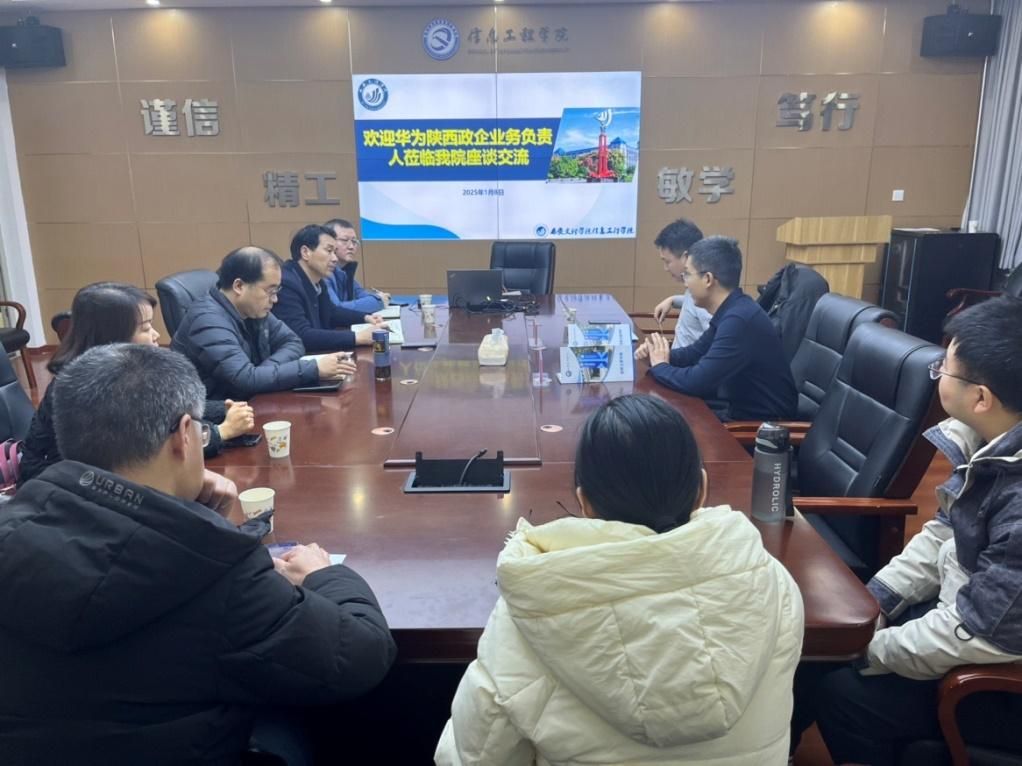 1月8日,华为陕西政企业务负责人罗阳、龙立强一行2人来访我院进行座谈交流,信息工程学院院长陈广锋、副院长冯永亮、卫星遥感中心副主任雷磊,计算机科学系主任车鹏飞及人工智能专业教师代表参加了座谈会。