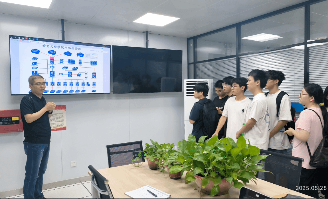 5月28日,《计算机网络》任课教师雷伟军教授带领信息工程学院物联网工程专业2023级全体学生赴学校信息与现代教育技术中心开展实践教学活动。本次活动以课外方式进行,通过沉浸式、具象化的计算机网络实际应用场景,加深学生对计算机网络完整体系的深入理解。