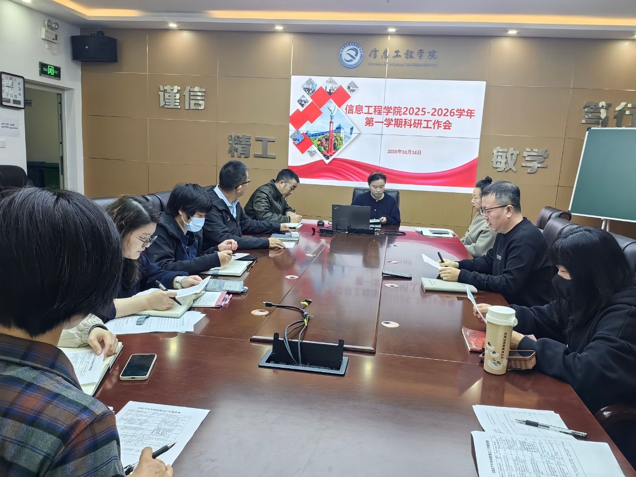 信息工程学院召开2025-2026学年第一学期科研工作推进会 2025年10月16日上午,信息工程学院召开2025-2026学年第一学期科研工作推进会。副院长冯永亮、各系科研工作负责人、党政办、实验中心、学工办主任参加会议,会议由副院长冯永亮主持。首先,冯永亮介绍了我院今年内科研到账及科研工作取得的各项成果和成绩;接着就我院下半年六项科研重点工作做出了详尽解读和安排。针对每项工作,明确了具体工作要求、时间节点,并逐一落实了承办系部及责任分工。会议最后对各学科科研负责人提出明确任务要求,...