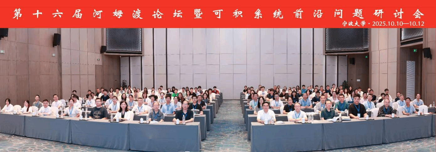 10月10日至12日, 第十六届河姆渡论坛暨可积系统前沿问题研讨会于宁波召开。本届论坛由宁波大学数学与统计学院、物理科学与技术学院合办,来自美国佛蒙特大学、清华大学、北京大学、复旦大学、上海交通大学等国内外150余名专家学者齐聚一堂,围绕可积系统在人工智能时代下的理论发展、应用拓展与未来方向展开深入交流。我校微分方程与机器学习重大创新团队负责人夏亚荣教授应邀参会。